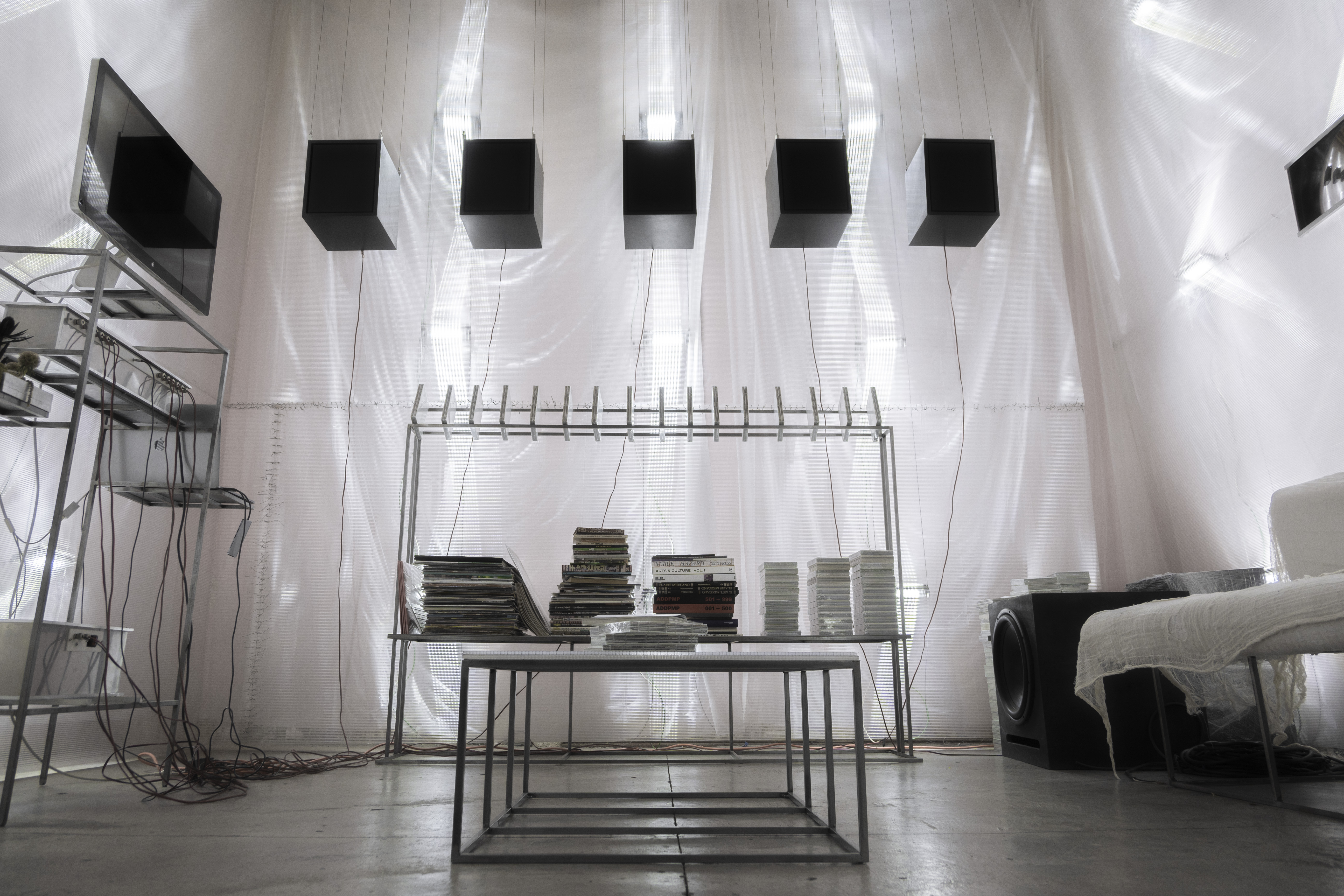 xpan.studio.2025 is the spatial intervention developed to house xpan’s studio inside “proyectos públicos”, mexico city. the system was built in february 2025 and fully designed as a suspended, modular, and removable infrastructure.