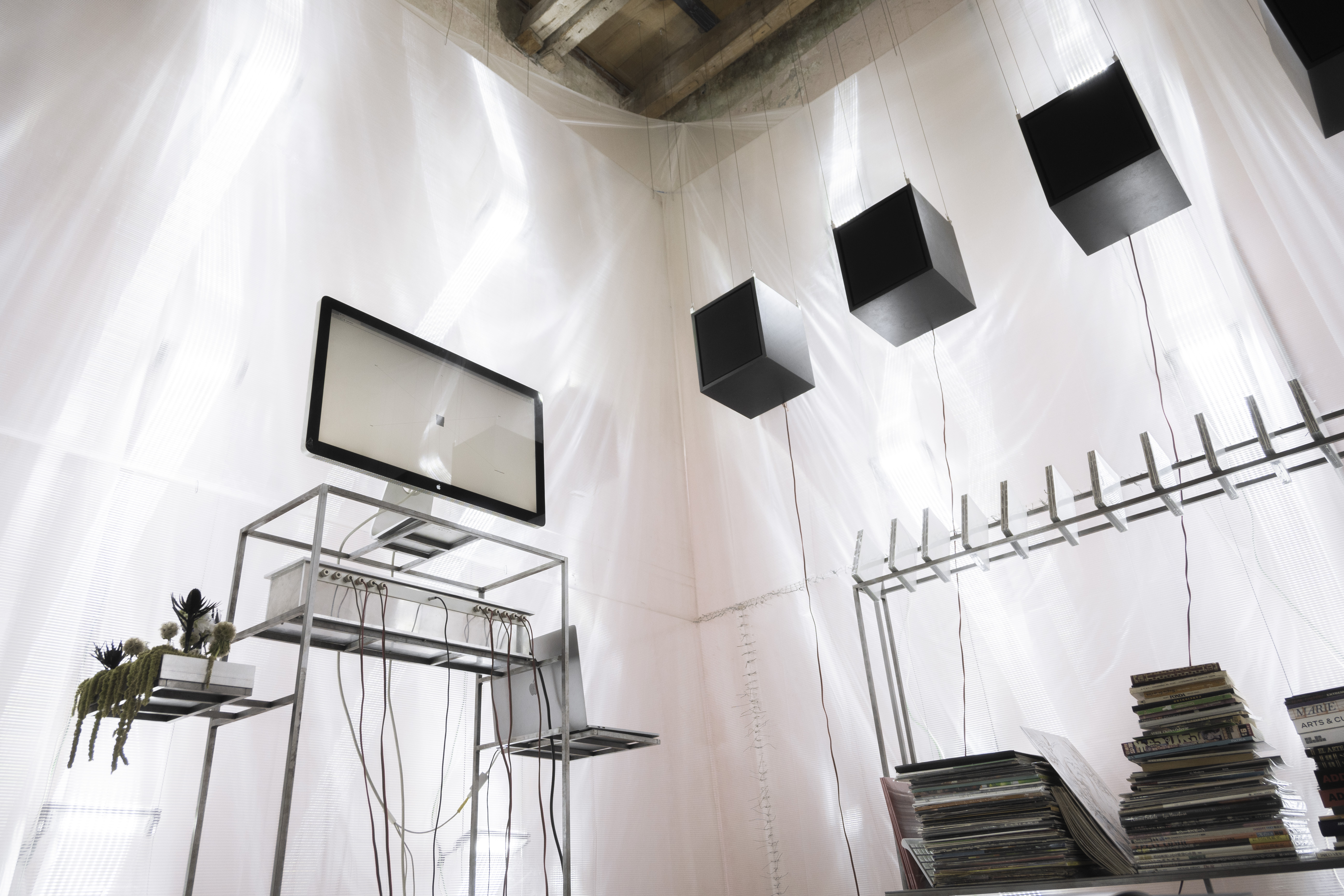 l’espace fonctionne comme noyau opératif de xpan : il accueille des sessions d’analyse, de montage éditorial, de développement technique et d’archivage. sa configuration permet d’accueillir différentes fonctions sans fixer une disposition unique. le studio agit à la fois comme outil de travail et comme forme de pensée spatiale.